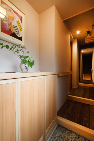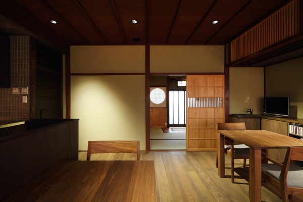 観音院の参道に寄り添うように建つこの町家は、大正9年(1920年)に建てられた。永きに渡り、風雪に晒され、老朽とは正しくこのことかと感じさせるほどの体裁ではあったが、大正時代の好景気を感じさせる艶のある趣や崖地に建つ様は独特の威風さえ感じるものでもあった。この町家を生き返らせることが、この度の使命であった。単なる修繕に留まらず、性能や機能を高め、魅力を加えることで価値を増し、代え難いものとして、この地に存続するのである。一言でいえば、伝統に現代の技術や価値を加えたのである。そこには人の繋がりがあり、街を慕う思いが引き継がれる。掛け替えのない大切なコンテクストがある。